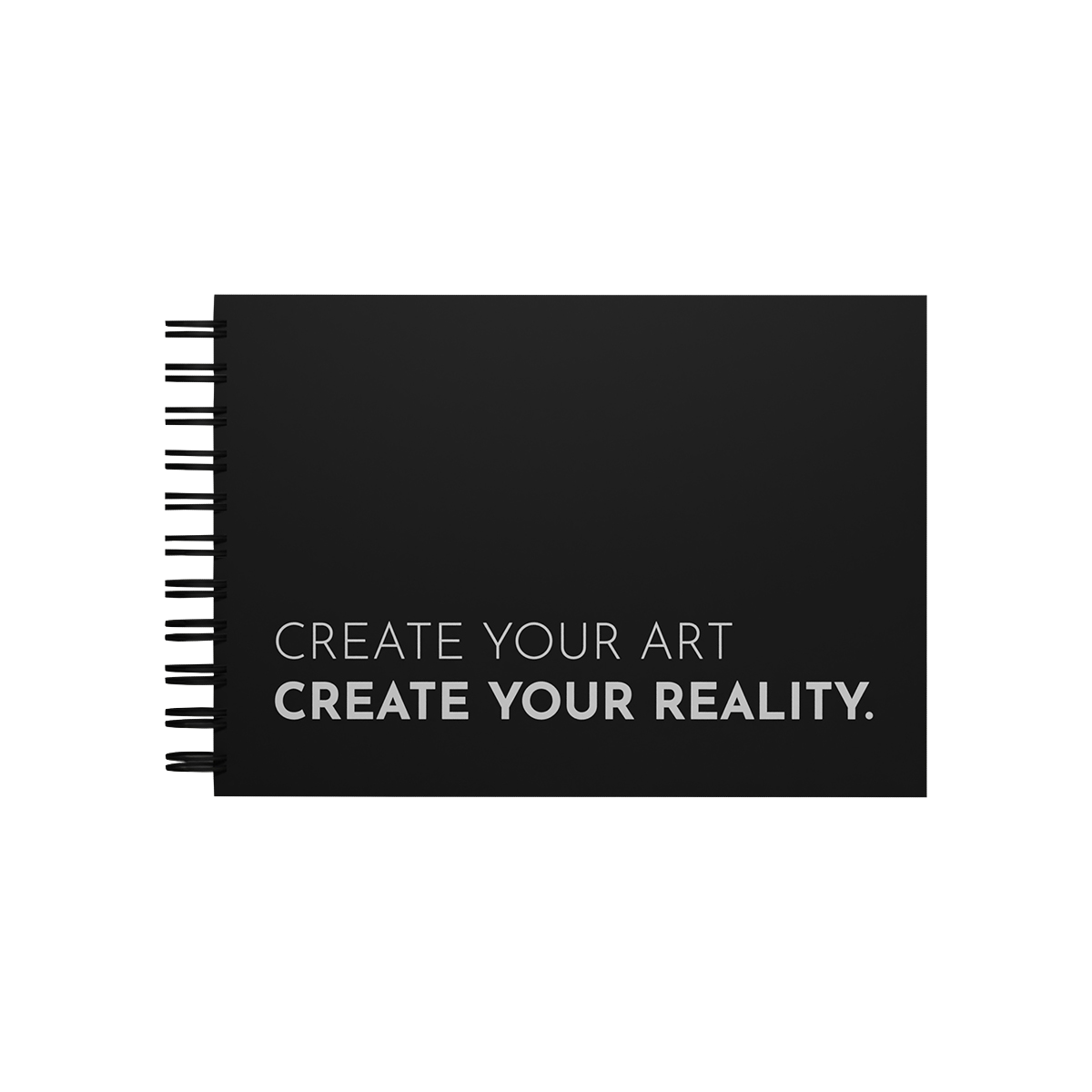 Crna A5 sveskasačvrstim, polumatstranicamaispiralnimpovezom. Sadrži 50 listova (100 stranica) u kremtonu, sanežnomteksturomipovećanomtežinompapira. Idealna za skiciranjeivežbanjetehnike hairstroke.